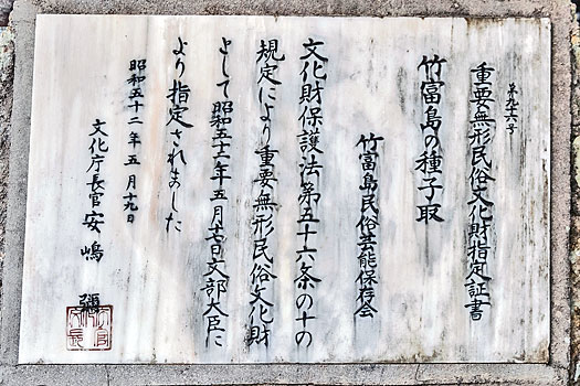 種子取(祭)の重要無形民俗文化財指定の石碑 | 種子取(祭)の重要無形民俗文化財指定の石碑 |