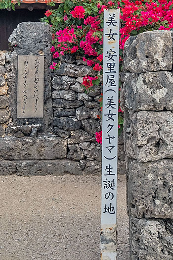 誰でも一度は聞いたことがある沖縄民謡「安里屋ユンタ」に歌われた絶世の美女安里屋クヤマの生家跡です。
