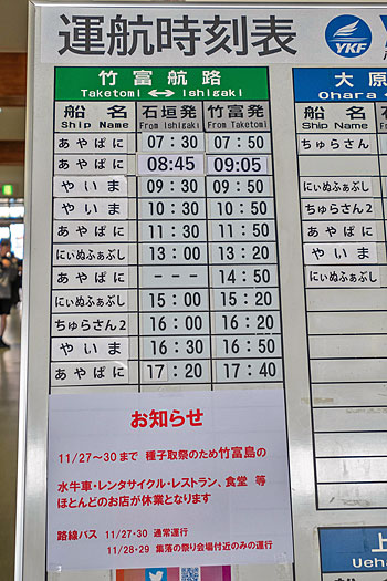 ![]() 竹富航路の注意書き |