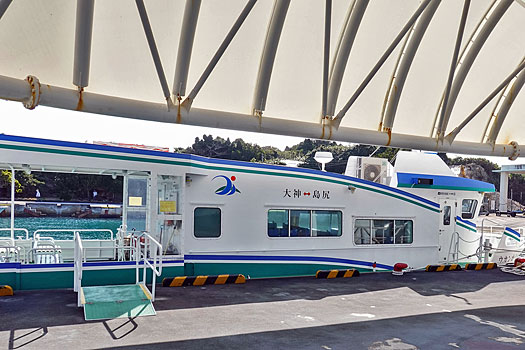 島尻漁港に到着しました。フェリーは1日4便、10時20分発の第2便で大神島へ向かいます。約15分の船旅です。