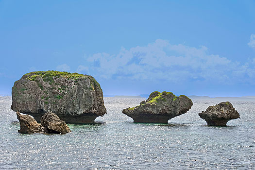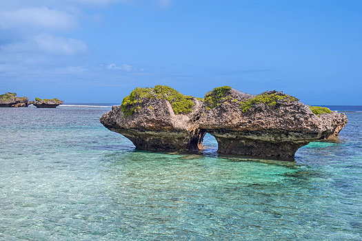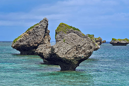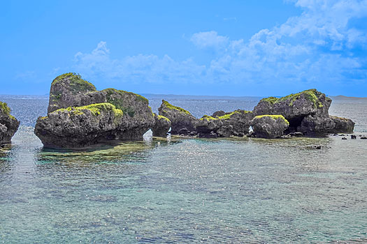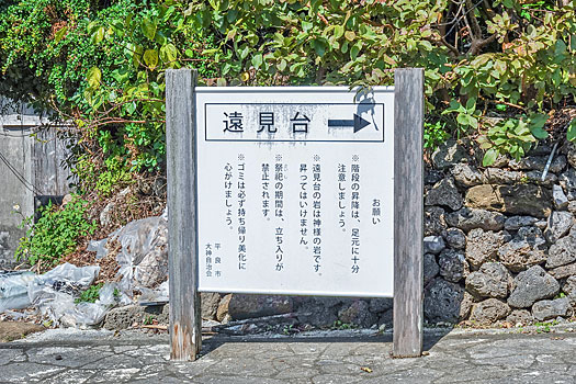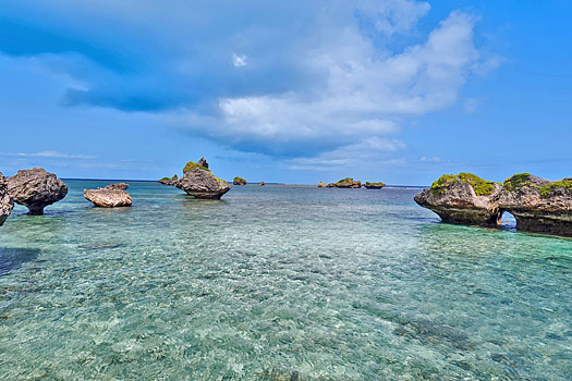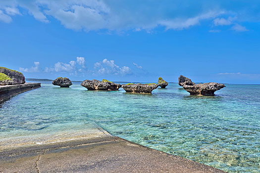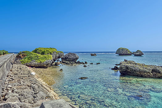 観光のメインは漁港から東西に延びる1.3km程の海岸道路から透き通った青い海に点在する奇岩をぼんやりと眺めることでしょうか。