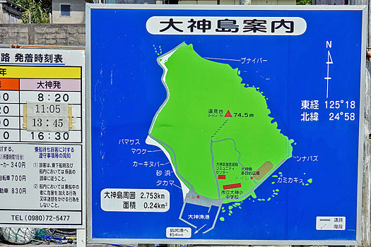我々は大神島のガイドツアー「大神島のおじいの観光ガイド」を予約しておきました。約1時間半のツアーですがカートで移動するので歩くのは高見台(展望台)への階段ぐらいです。
