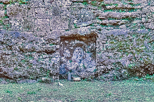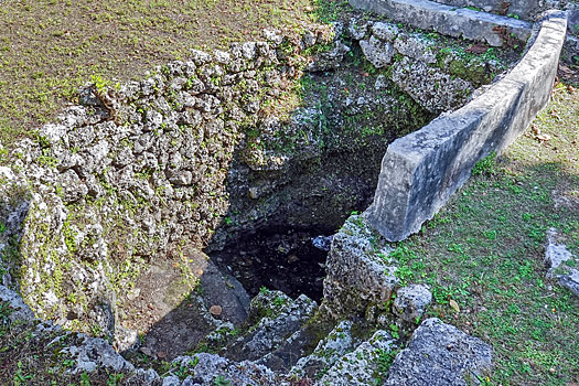 ところで、石碑に刻まれた「犬川」と「ニブス川」ですが、宮古島には川がないので、自然壕に湧きできる泉のことのようです。この小さな御嶽にある井戸が「犬川」であり、「ニブス川」なのかも知れません。目黒盛の窮地を救った愛犬が飛び出してきた洞穴がこの井戸の辺りだったのでしょう。