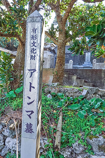 「あとんま」とは、後妻のことです。後妻は本妻と同じ墓に葬ることができなかったため、仲宗根豊見親を祖とする忠導氏族の後妻だけが別に葬られています。
