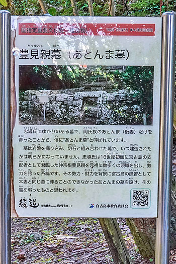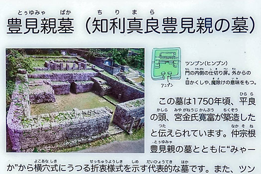 解説によると、豊見親墓は、仲宗根豊見親を始祖とする忠導氏にゆかりのある三基の墓を重要文化財として一括指定したものです。