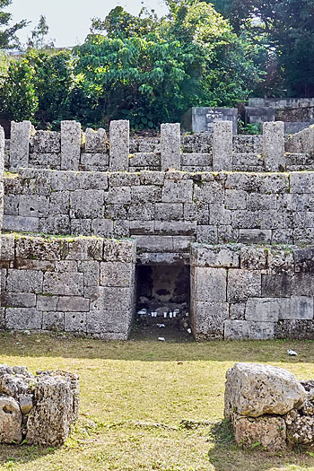 13段の階段中央に墓室の入口があり、内部は10畳ほどの広さで、壁で前後2室に仕切られているそうです。