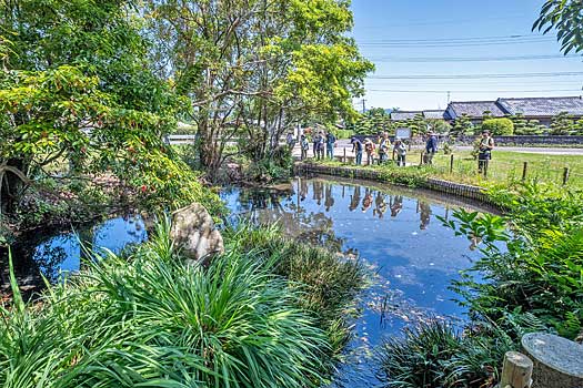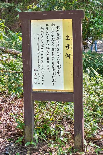都萬神社境内の出産河(しゅさんご)と呼ばれる湧泉です。泉の滑かな大きな石を撫でると子宝に恵まれるとか。