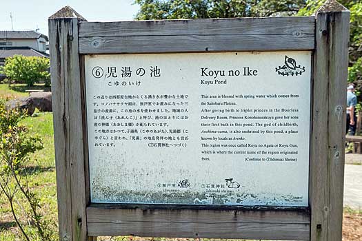 木花開耶姫が無戸室で産んだ三皇子の産湯に、この池の湧き水を使ったとされています。