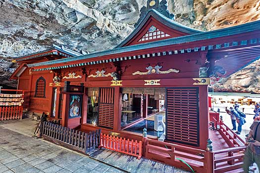 鵜戸神社の本殿です。この洞窟内に主祭神である鸕鶿草葺不合尊(うがやふきあわせずのみこと)が産まれた産屋があったと伝えられています。