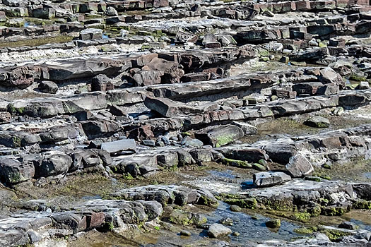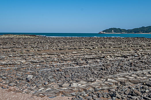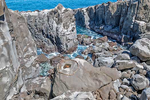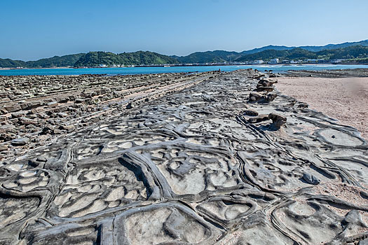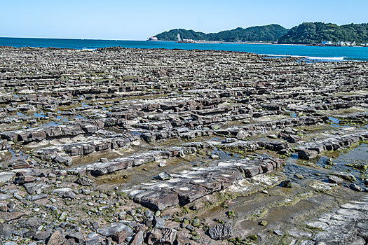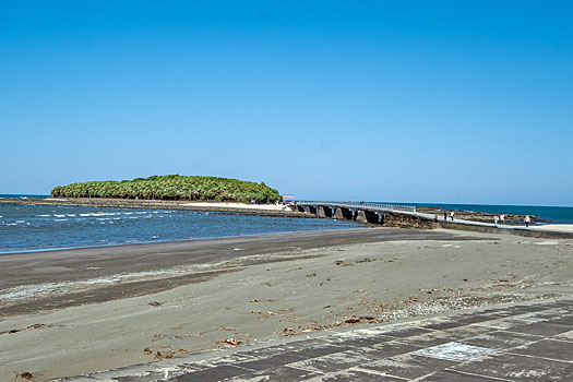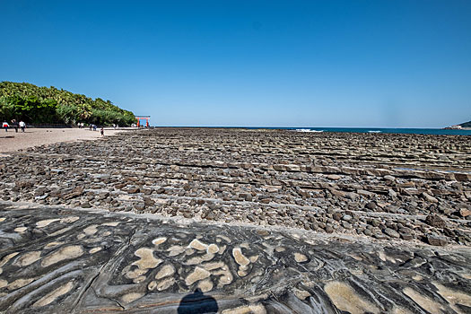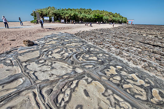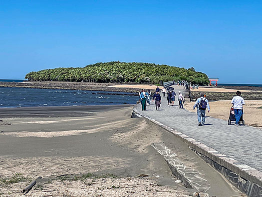 弥生橋を渡り青島神社へ向かいます。ちょうど干潮時のため鬼の洗濯板がくっきりと現れています。もし満潮時で波に沈んでいたら青島の魅力も半減したかも知れません。