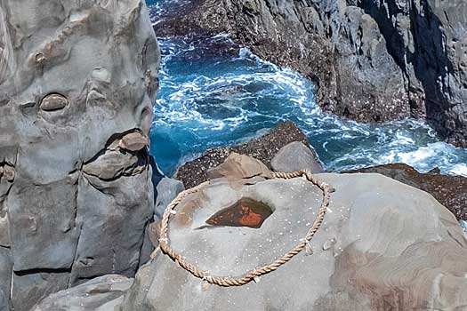 豊玉姫が海神宮(わたつみのみや)から乗って来た亀が石となったと伝わる霊石の窪みに運玉を投げて入れば願いが叶うそうです。