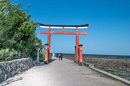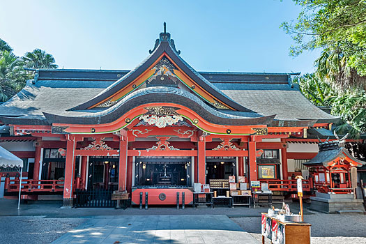 青島神社は、山幸彦が海神宮(わたつみのみや)(龍宮)から帰還し、青島に宮殿を建てたとされる跡に上記三柱を祀ったことに始まると伝えられています。