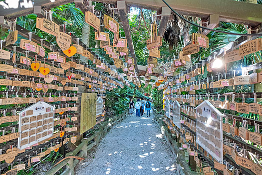 鵜戸神社の主祭神の頭の音が「う」であることから、卯、兎(うさぎ)が縁の深い動物とされ参道には多くの兎の奉納像が並んでいます。