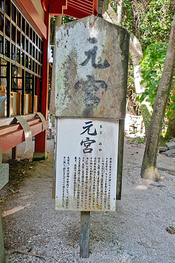 青島神社の元宮は本来の社地であったとされる場所です。ここに山幸彦の宮殿があった伝えられています。そのため元宮には本殿と同じように彦火火出見尊(山幸彦)、豊玉姫、塩椎神(しおつちのかみ)の三柱が祀られています。