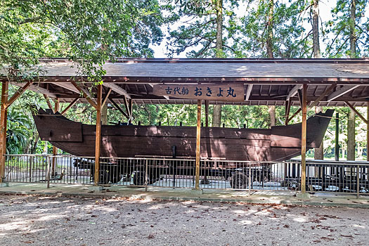 二の鳥居を通り参道を進むと右手に木造船「おきよ丸」があります。