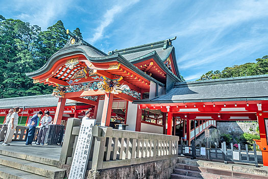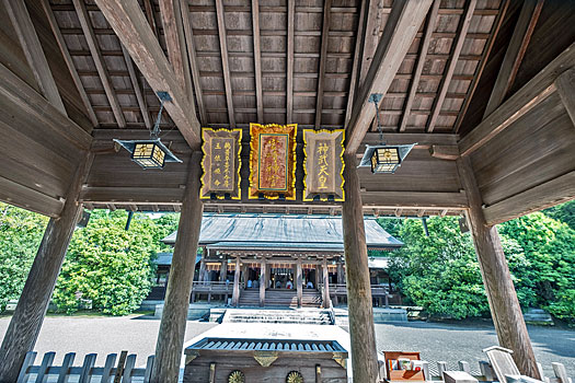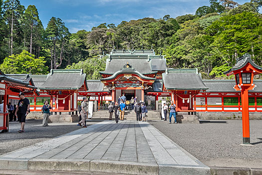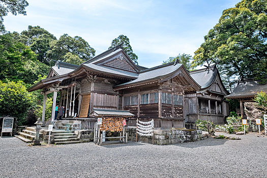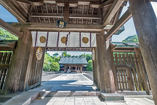 主祭神は神日本磐余彦天皇(神武天皇)です。父神と母神の2柱も合祀されています。父神は昨日訪れた鵜戸神社の地で生まれた鸕鷀草葺不合尊、母神は豊玉姫の妹、玉依姫です。