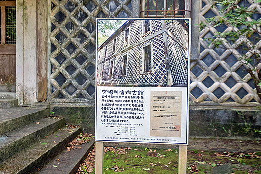 宮崎神宮徴古館は、宮崎神宮の宝物や書籍を陳列・保存のため明治42年に建てられたなまこ壁の木造二階建ての建物です。展示物は近くの宮崎県立総合博物館に移されています。