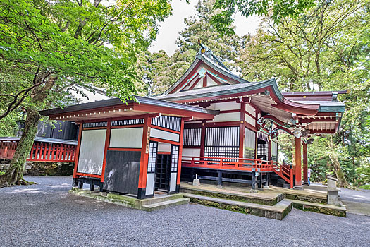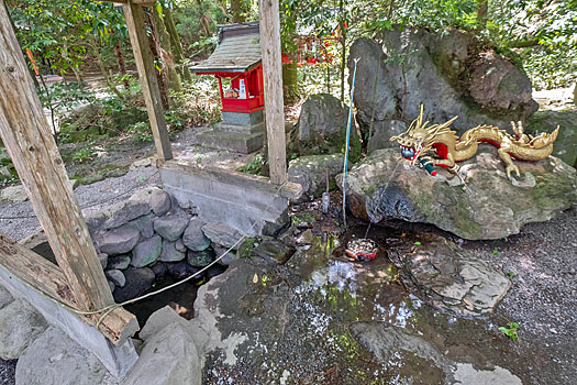 霧島東神社は、霧島連山の高千穂峰の中腹、標高500メートルに位置しています。境内からは龍神伝説の伝わる御池が望めます。境内の忍穂井(おしほい)は龍神の安息池とされ、祠内には井戸があります。