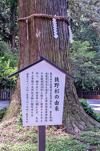| 狭野杉 | 狭野杉の由来書 |