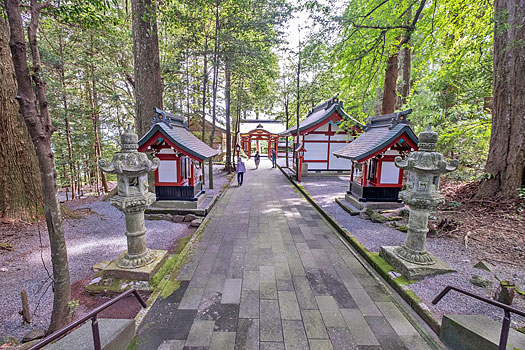 神木の夫婦杉の間を通り、神門を抜け拝殿へ向かいます。